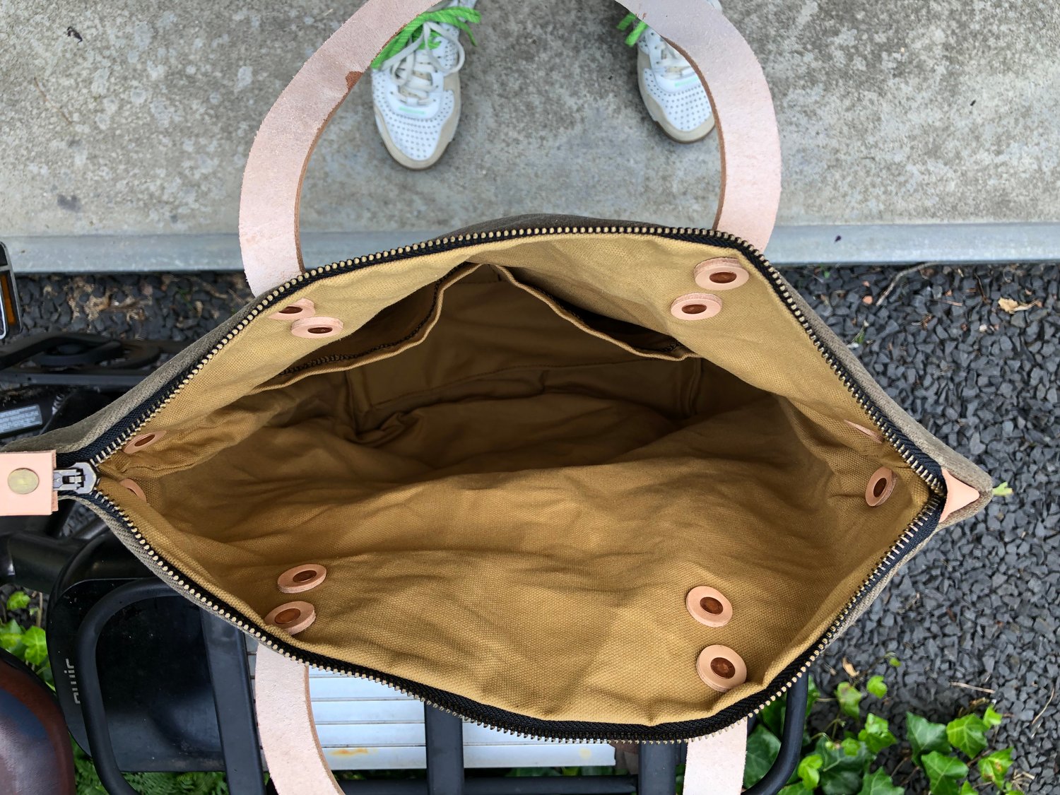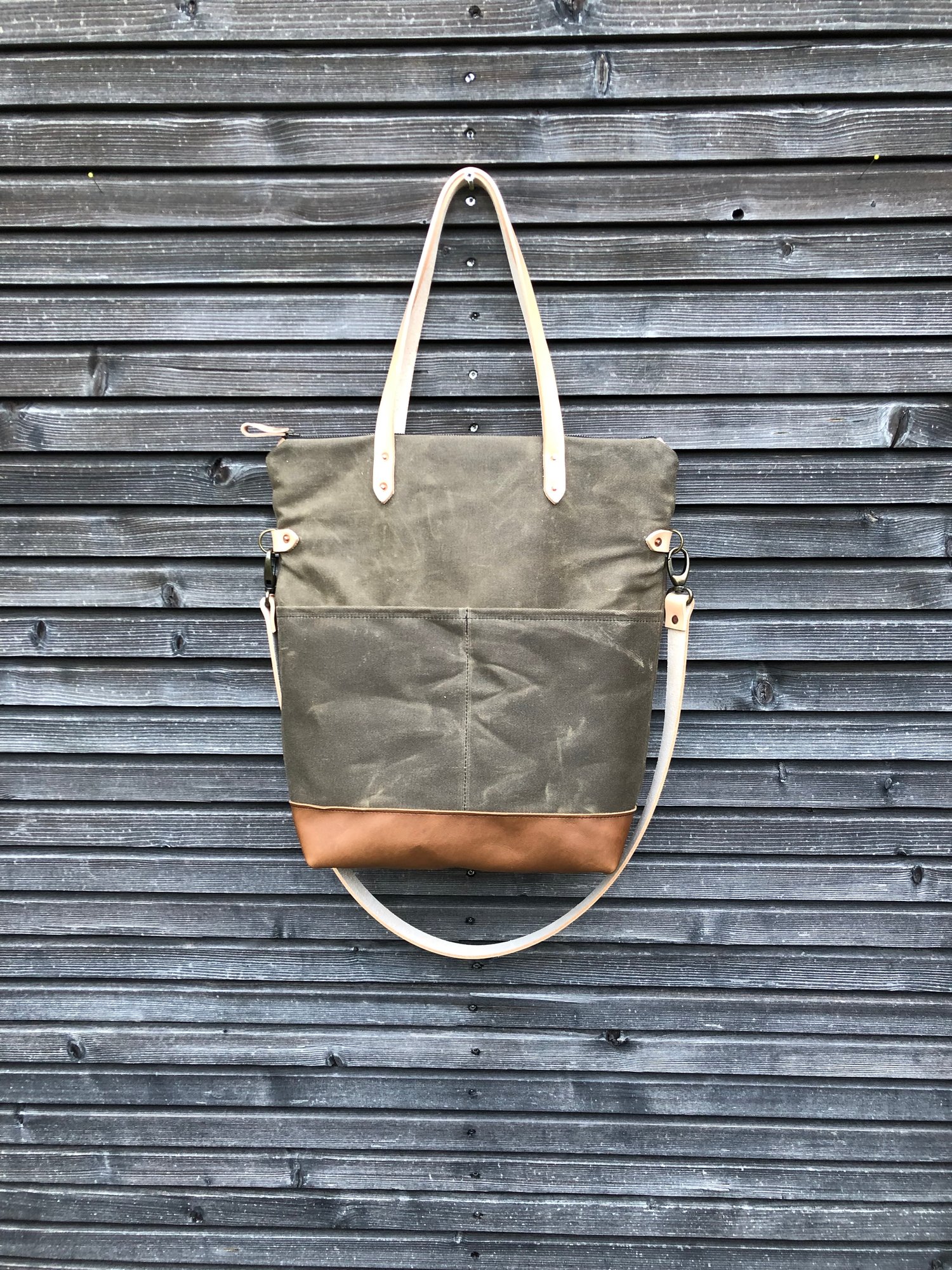 Bag made in waxed filter twill and vegetable tanned leather, I used natural colour leather and ranger tan waxed filter twill.