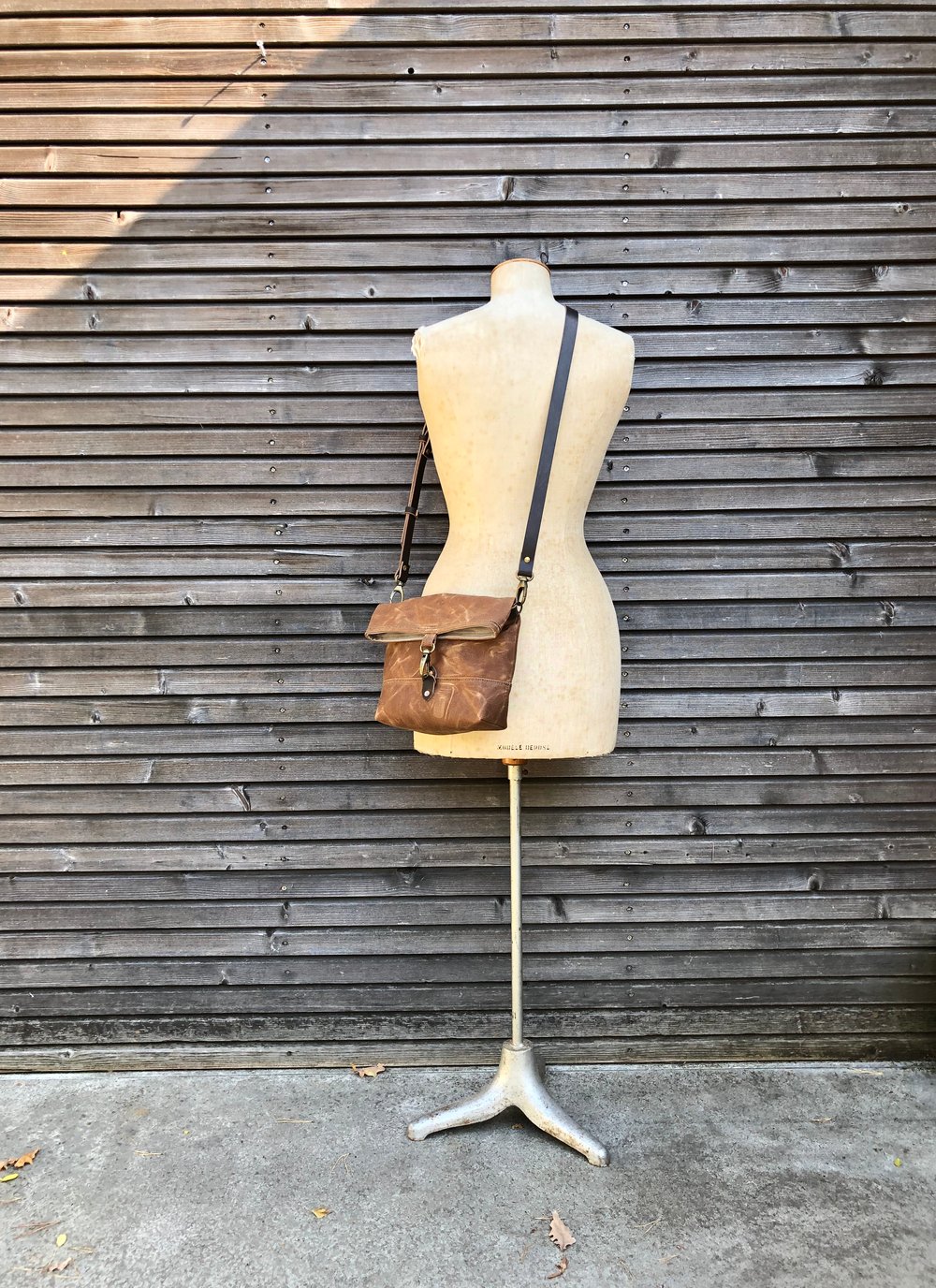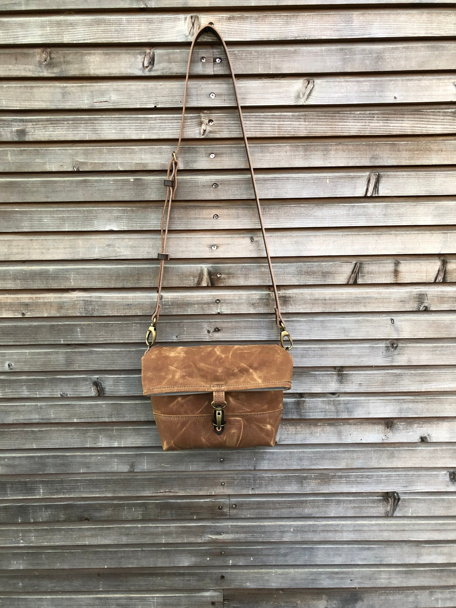 Day bag in waxed canvas with folded top / small messenger bag / canvas satchel