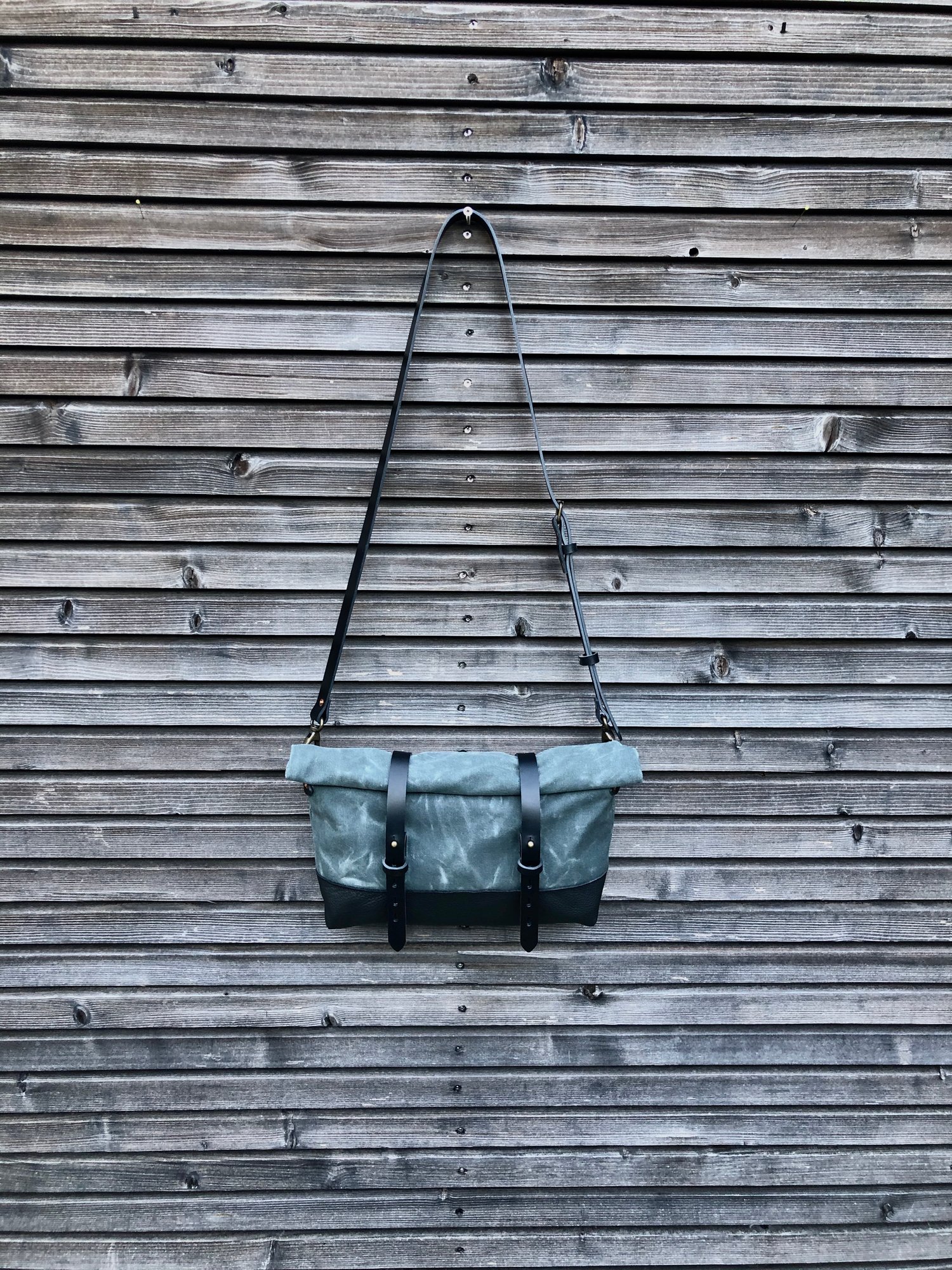 Grey waxed canvas and leather satchel / messenger bag / canvas day bag