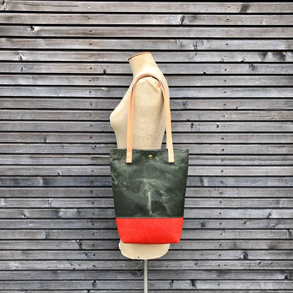 Waxed canvas and Piñatex™ tote bag - eco friendly simple tote bag - tote bag with red bottom