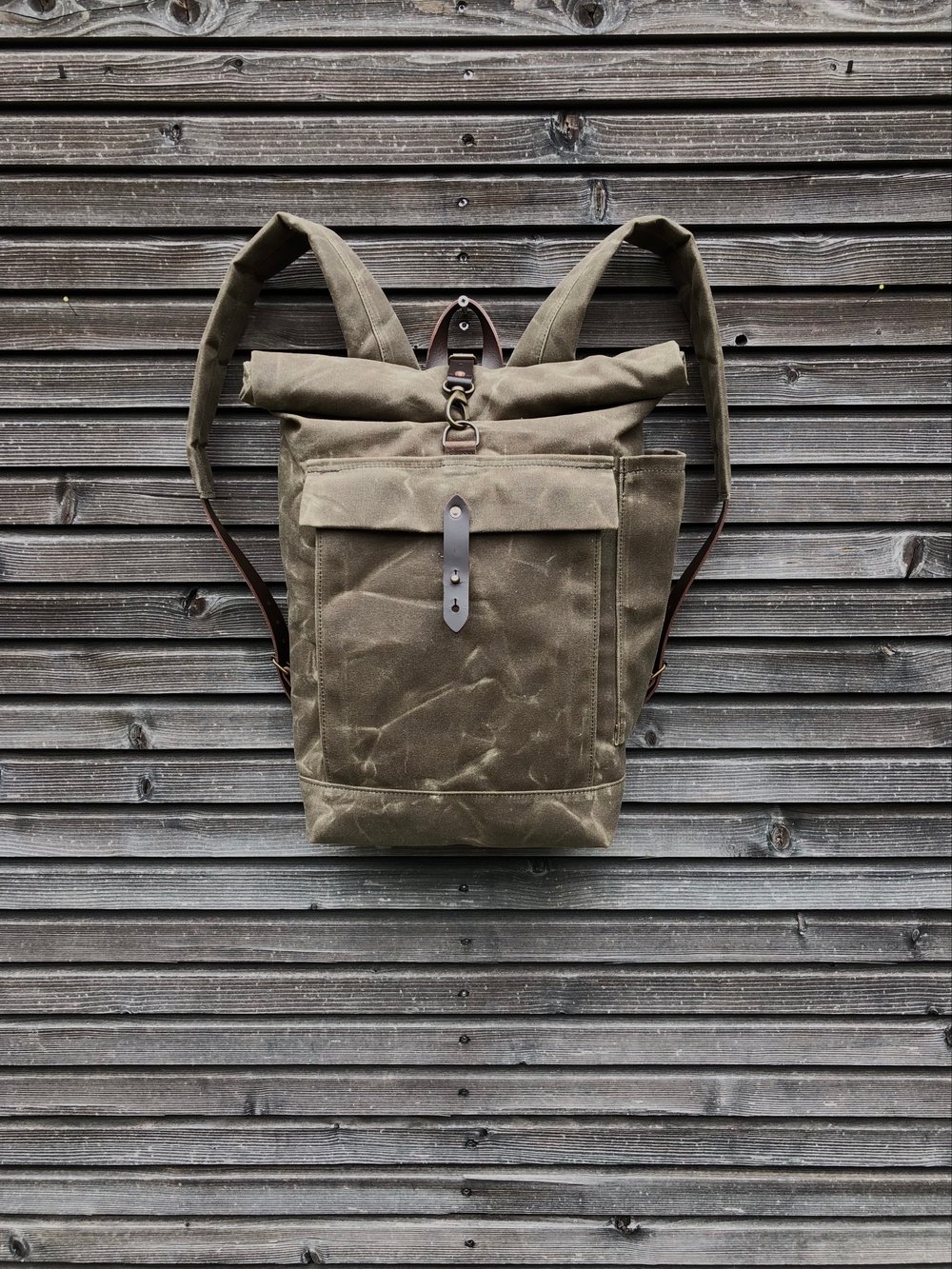 I made it into an everyday backpack/rucksack, with padded waxed canvas straps and leather and clasp closure with buckle. Roll to close top and large outside volume pocket with flap and snap closure also and water bottle pocket on one side.